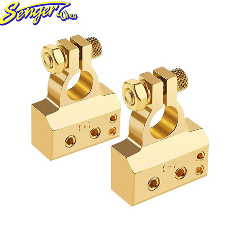Conector de terminal de batería positivo y negativo (+/-) 2 uds. Terminales de cabeza de batería de calibre 0 \ 2 \ 4 con cuñas Terminal de batería de coche
